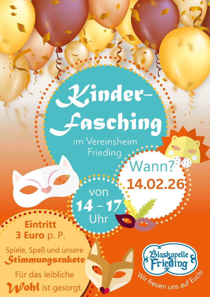 Am Samstag, den 14. Februar steigt wie jedes Jahr unser legendäre Kinderfasching. Ab 14 Uhr heißt es im Vereinsheim Frieding